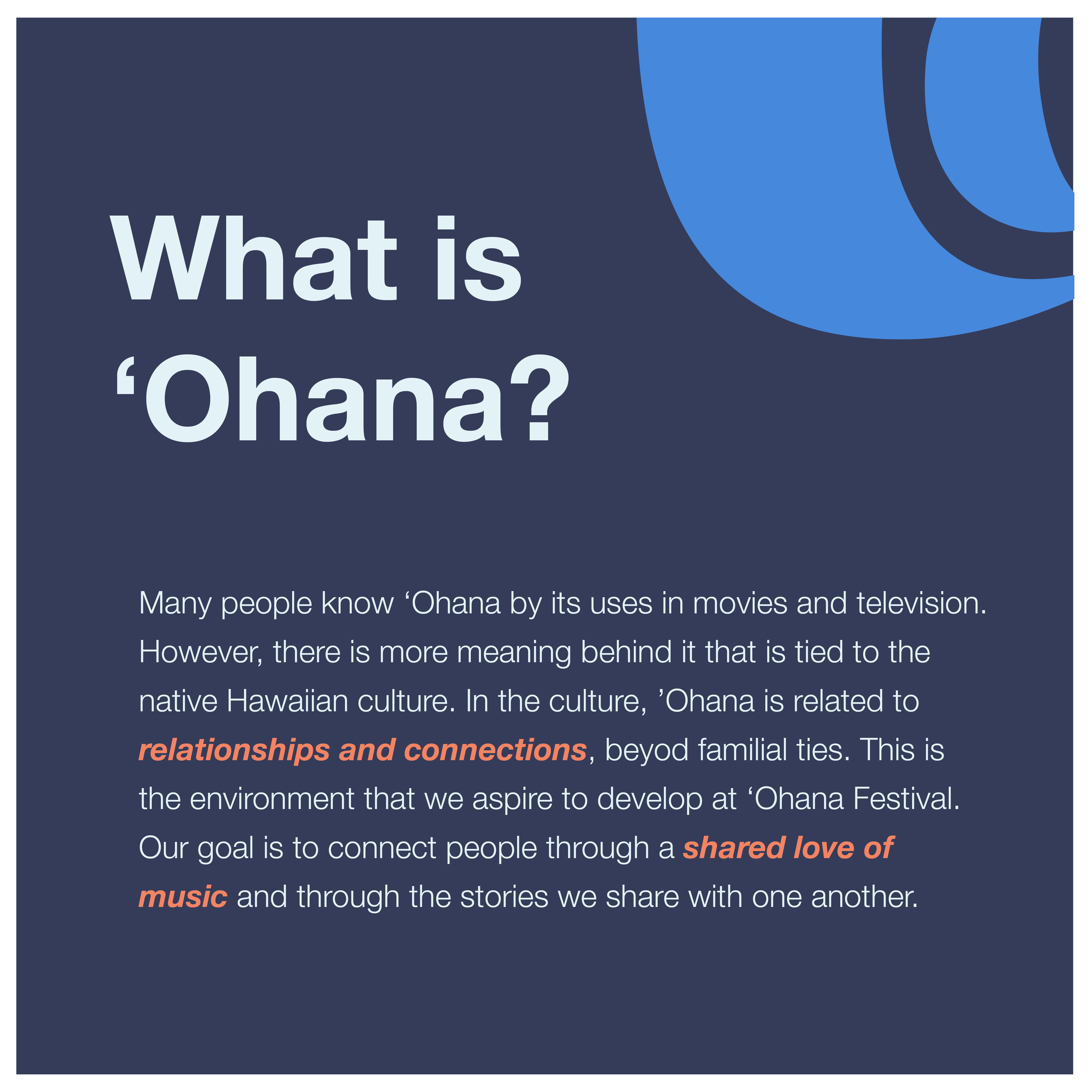This fictional project was evolving the current brand identity and developing it into something that fits the brand’s mission in a more accurate lens. Through this project, research of the Polynesian culture was taken into consideration to better understand what ‘Ohana means and what it truly entails. In the Polynesian culture, ‘Ohana means connections, relationships, and a sense of community. This is the energy and feeling the festival aims to evoke.