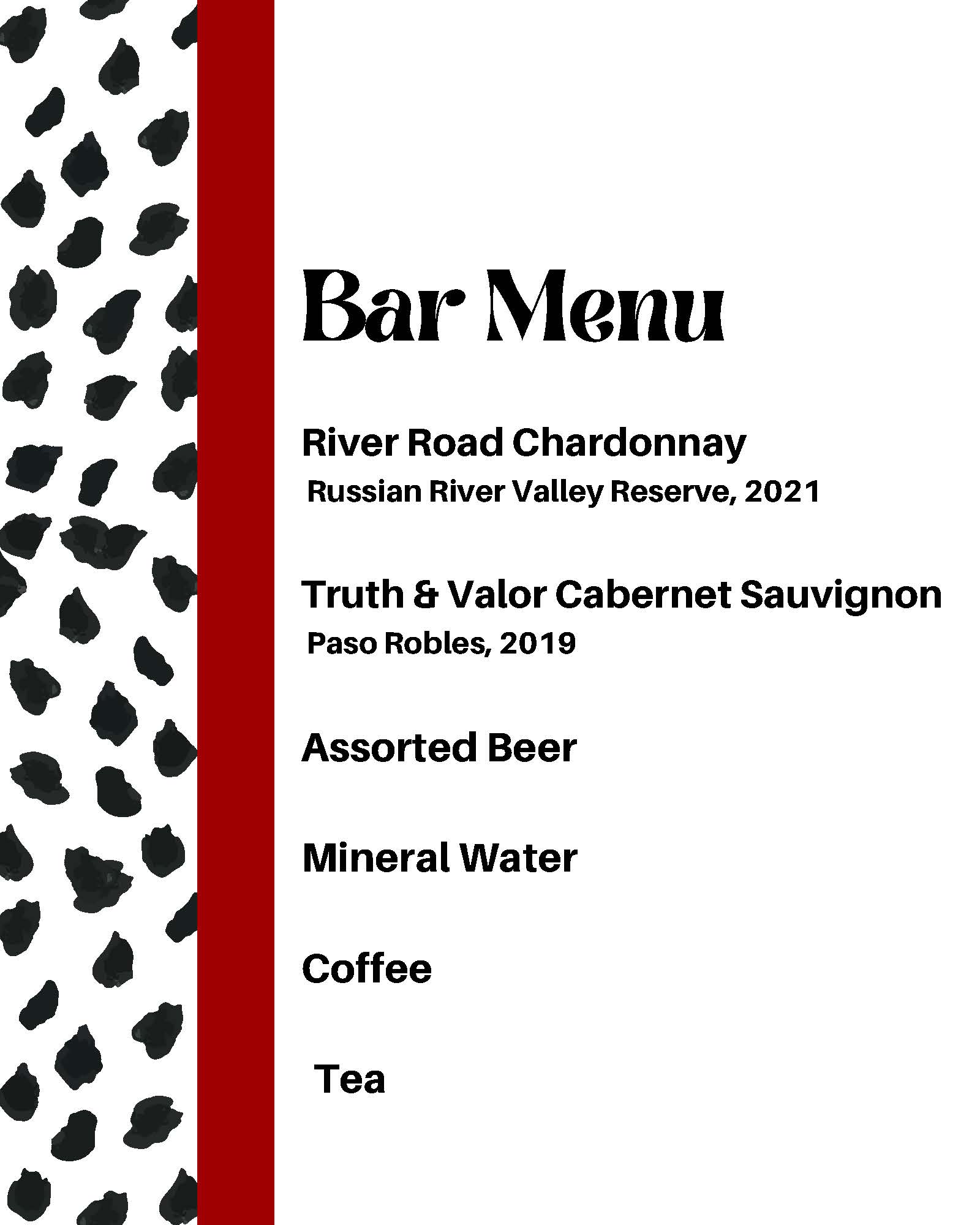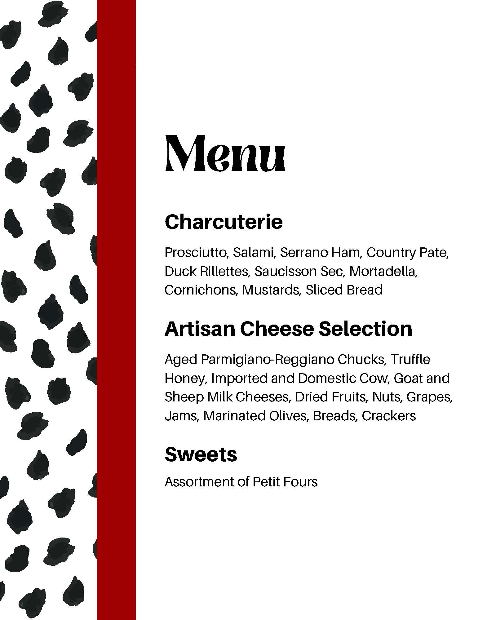 Menu and Event Design for Donor Reception, themed to 101 Dalmatians