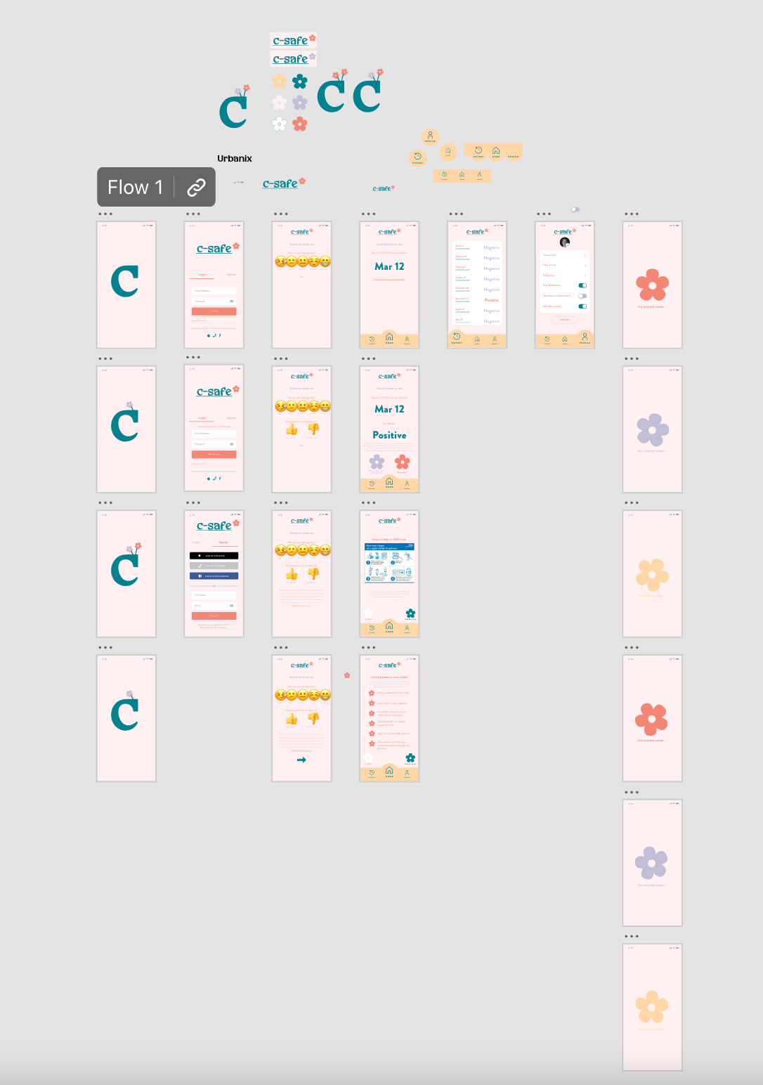 Scope: App Design, UX/UI, Brand Identity Tools:Illustrator, Adobe XDc-safe is a fictional startup that produces at-home COVID-19 test kits integrated with a mobile app. The kit includes a sterile swab and solution vial, which connects to the app to deliver test results. The app guides users through the testing process and provides real-time support and instructions.